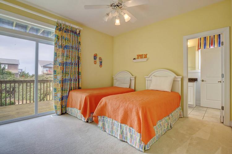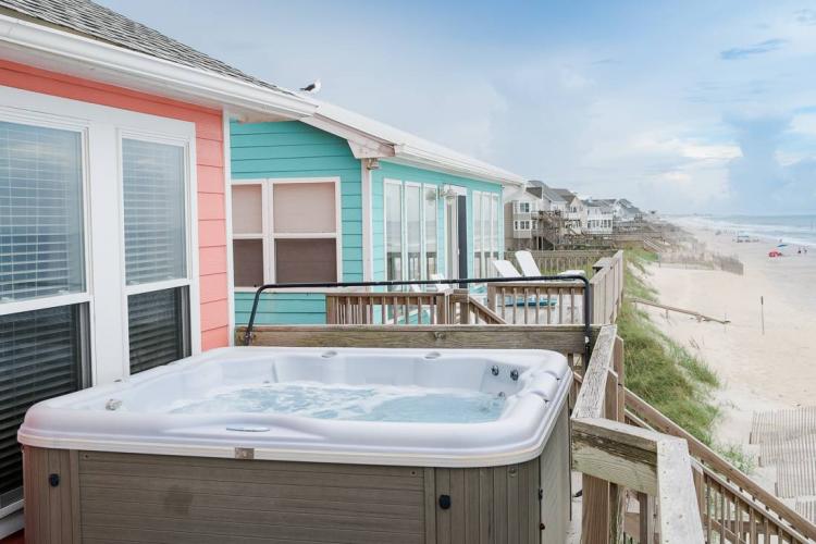 This unique oceanfront paradise is drenched in rich colors and personality. With four generous balconies to enjoy endless ocean views, a private hot tub, community pool, and direct beach access, Flip Flop Day #123 is the epitome of a beach getaway. Looking for a medium-large home to accommodate a family reunion and or girls or guys getaway? This home accommodates 18 people and offers something everyone will enjoy. Located in North Topsail Beach.
